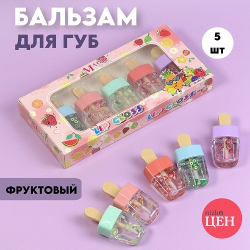 Набор из фруктовых бальзамов для губ 5 шт Оптовая цена: 1250 тг/уп