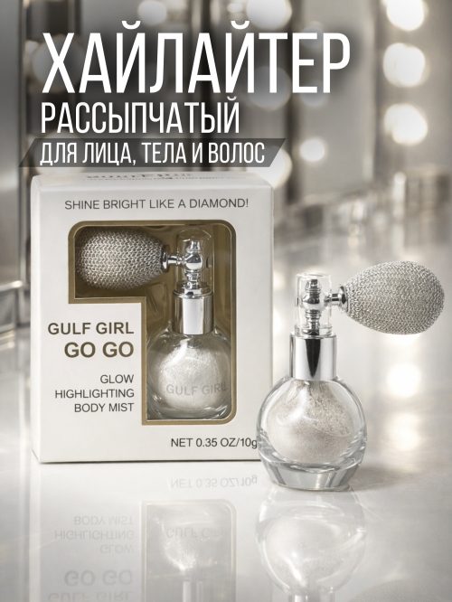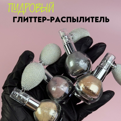 Глиттер блестящий с распылителем. Cухая рассыпчатая пудра для лица и тела, с большим количеством сияющих частиц. Инновационные пигменты и нанесение пудры посредством пульверизатора позволяют создать блеск с 3D-эффектом. Так же можно растушевать пудру на коже кистью до желаемой плотности. Плотность нанесения можно варьировать путем приближения или удаления распылителя с пудрой относительно желаемого места нанесения продукта.