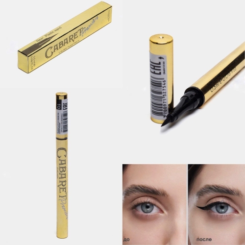 Подводка-фломастер для глаз Cabaret Premiere, водостойкая, четкий контур и быстрая фиксация, черный. С ней вы легко нарисуете эффектные стрелки, которые не потеряют форму в течение всего дня, а водостойкая формула сохранит макияж в любую погоду. Благодаря тонкому конусообразному аппликатору фломастер рисует четкий контур и невероятно удобен в применении. Подводка не растекается, быстро фиксируется и не стягивает кожу. Современная упаковка air-tight предотвращает высыхание. Средство не тестируется на животных. Также в коллекции есть черная и коричневая подводка-фломастер .